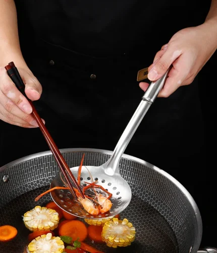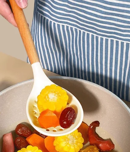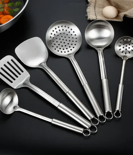 5. The slotted serving spoon is ideal for draining water from cooked food before serving. The heat-resistant nature of the cooking spoon makes it ideal for stirring hot soups and sauces while cooking on the stove top.Use slotted spatula to fry eggs, flip chocolate cakes, cakes, omelets, biscuits, pancakes, crepes, pies, fish, quiche or use as a sieve to allow excess fat to drip off.