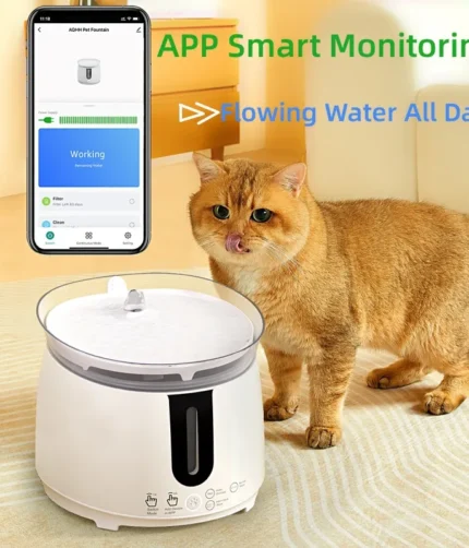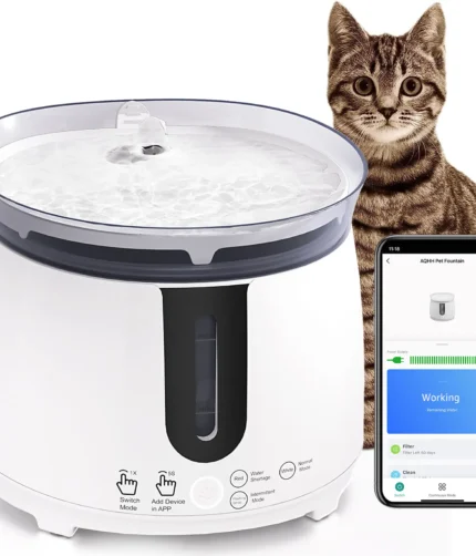 AQHH Cat Water Fountain with Wireless Pump Pet Water Fountain for Cats Inside Automatic Smart Fountain App Control Easy Cleaning
