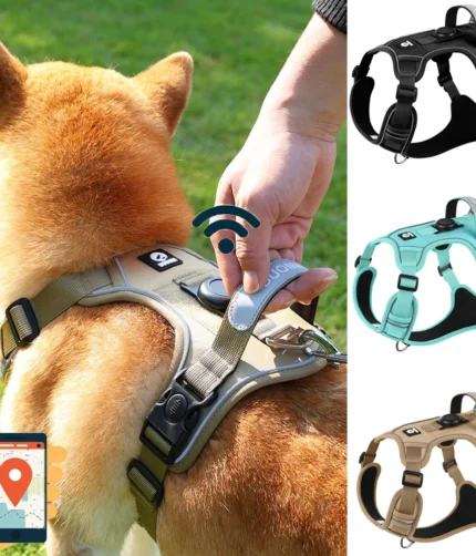 ClearAirTag Dog Harness Heavy Duty Reflective Dog Vest Harness with Air Tag Case for Medium Large Dogs Pet Harness Dog Supplies